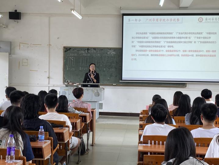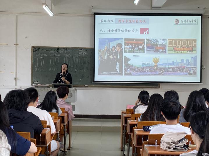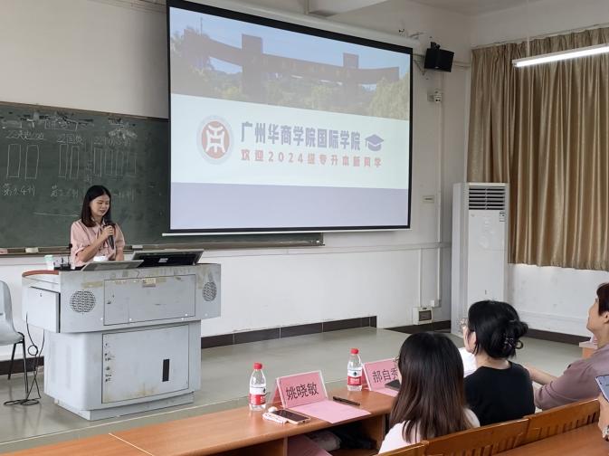 On September 11 and September 24, 2024, the International School of Guangzhou Huashang College conducted two freshman orientation sessions—one for 2024 undergraduate students and another for 2022 junior-to-senior transfer students—at the Library Auditorium and Lizhi Building B503, respectively. Led by Dean Hui Yanyan, the sessions were moderated by Freshman Counselor Hao Zixiu and Student Affairs Director Guan Huihui.
