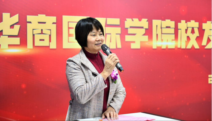 Then followed thespeechofDean YuHuifen.Firstly, shesaidthat althoughthe International School hasonly two classes of graduates, the alumni havemadesatisfactoryachievements.She thought theexcellentperformance of the alumnireflectedthe stage result ofthe international education of Huashang College.In addition, she hoped that the alumni association, while performing its regulartasks, would become a platform for tellingalumni successstories and promoting cultural exchanges between China and other countries.At last, she expected thealumniwouldmake success andadd luster to AlmaMater and the motherland.