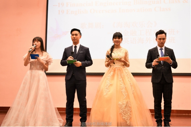 In order to enrich college life, cultivate students’ interest in English and build an English learning atmosphere, the 2nd English Evening of International School was held in the Huashang Meeting Center on December 17th, 2019. Four hosts, representatives of student union of International School, gave warm welcome to faculty and students and announced the start of the event. The English Evening began with warm applause.