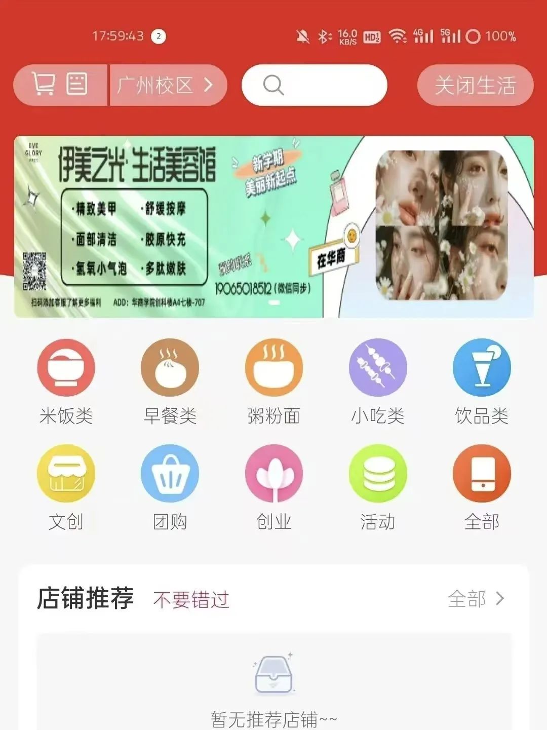 打开华商E家,在下方点击生活板块,即可浏览华商校内美食。