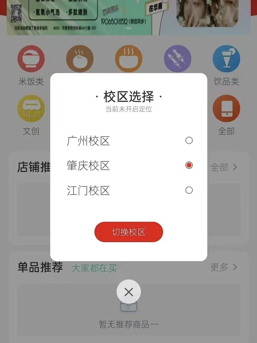 1、选择相应校区,即可看到相应店铺