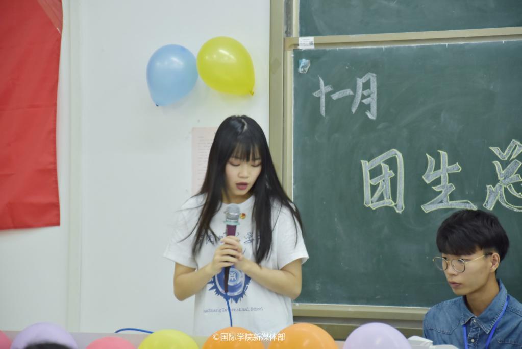 系列重要讲话精神,优秀班级代表19国际经济与贸易国际班刘咏薇同学进行宣讲。