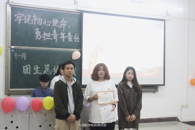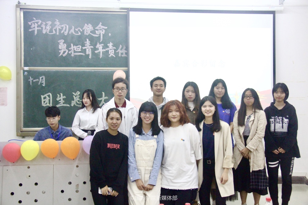 2019年11月26日晚6时30分,为响应习近平总书记的号召,纪念五四运动100周年,今年会jinnianhui官网在励志楼C503举办了“牢记初心使命,勇当青年责任”十一月团组织生活总结大会。此次大会邀请了今年会jinnianhui官网学生会主席许俊铭、今年会jinnianhui官网团总支副书记董潇璐、今年会jinnianhui官网学生会组织部部长廖邓鹏、文学院外语系组织部部长谢洁莹。
