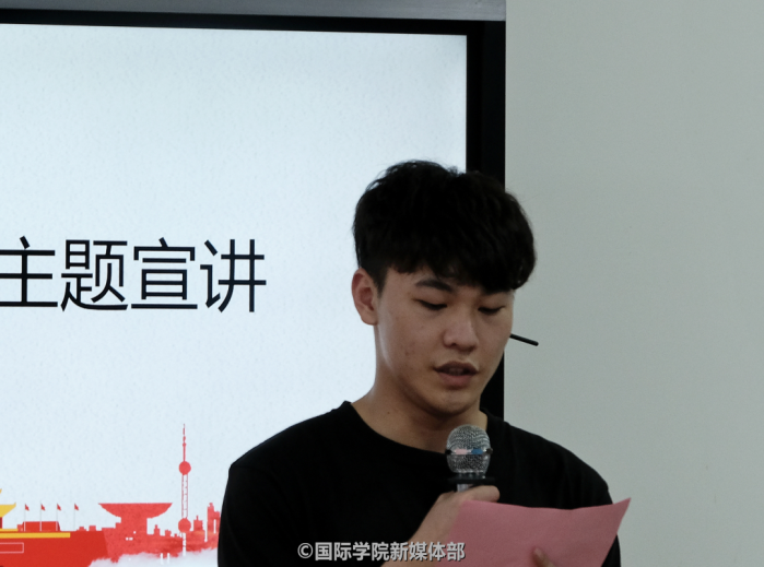 20级金融工程双语班的陈奕樾作为学生代表,进行主题宣讲,他总结并强调深入领会习近平总书记的重要讲话精神,深刻把握党史学习教育的重点,学会从历史中汲取精神力量,增强斗争意识,丰富斗争经验,提升斗争本领。