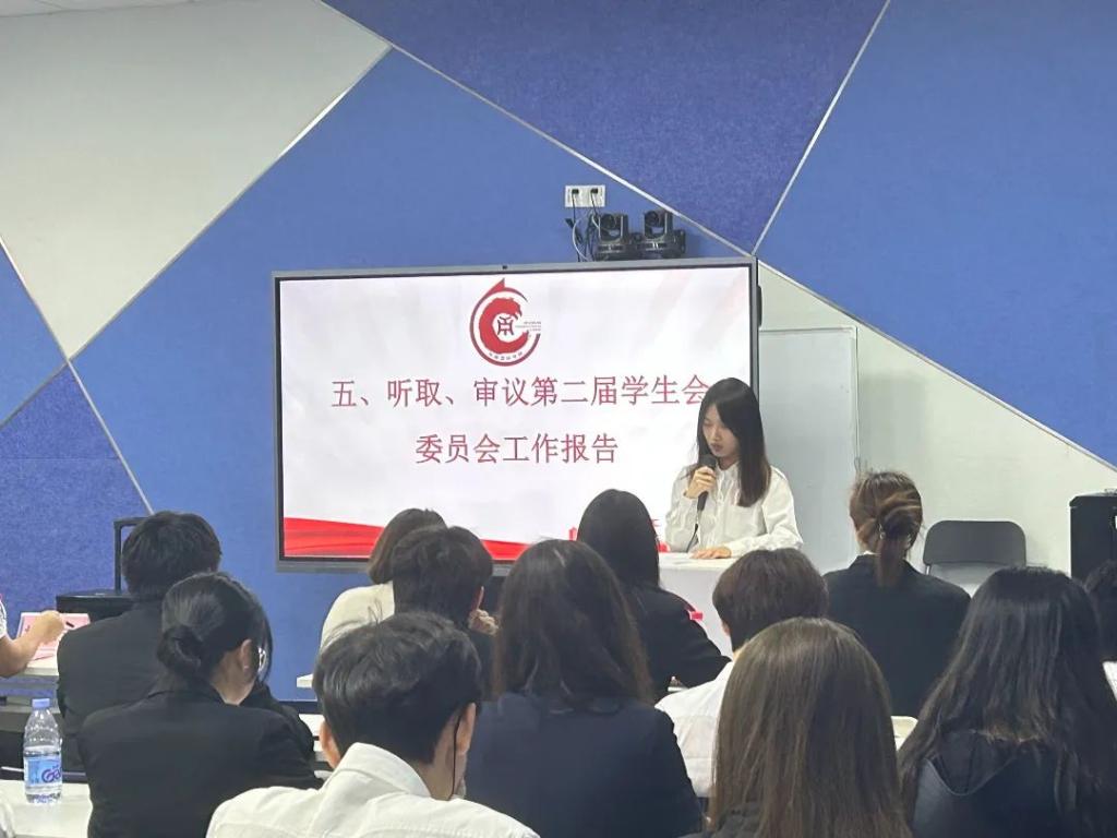 在随后的会议中,大会听取、审议今年会jinnianhui官网第二届学生会主席团成员徐洁莹所做的"深化改革,践行使命,服务同学,创新未来”主题工作报告,通过了今年会jinnianhui官网第三次学代会选举办法草案,通过了总监票人、监票人,计票人建议名单,经大会投票选举孙育愉、凌嘉媚、陈伟琪三名同学当选今年会jinnianhui官网第三届学生会主席团成员。