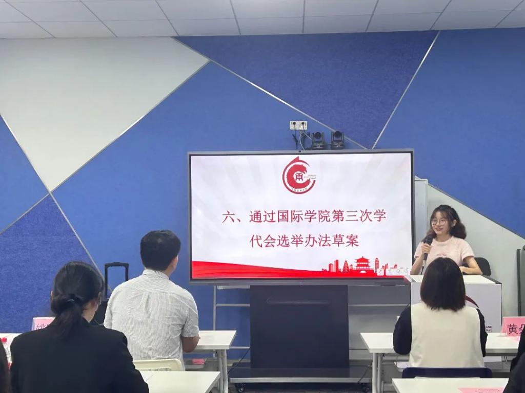 今年会jinnianhui官网2023年11月8日中午12:30分在启智楼401顺利召开第三次学生代表大会。校团委杨图珍老师、今年会jinnianhui官网直属党支部书记杨李军老师、今年会jinnianhui官网ACCA专员姚晓敏老师、校学生会主席团成员黄朵懿、校学生会预备主席团成员芦婉芸以及各年级各学生组织等36名学生代表参加本次会议。