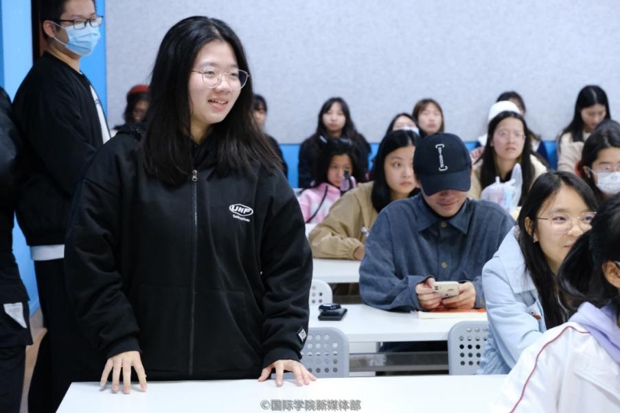 之后,全体同学观看团生活动优秀视频。该视频片段截选自历史题材电视剧《觉醒年代》,由同学们完成配音,从多个参选作品中脱颖而出。同学们的配音情感丰富、吐词清晰,让人感受到“五四运动”时期紧张的局势和同学们表现出的爱国之情。