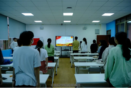 会议伊始,全体起立,奏唱国歌。在一声声嘹亮、整齐的歌声中能感受到同学们的青春活力和团结力量。