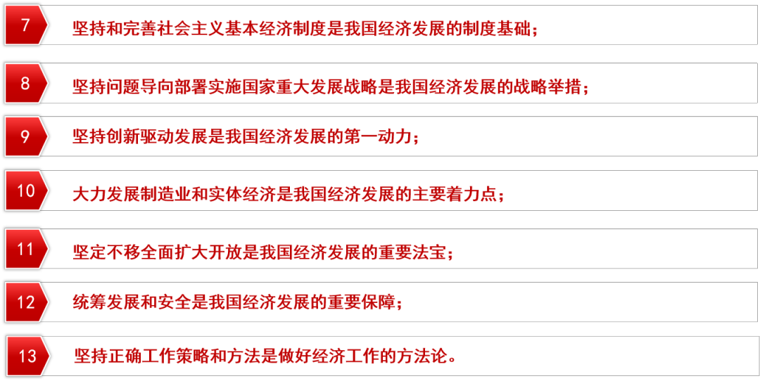 由中共中央宣传部组织编写的《习近平经济思想学习纲要》,将习近平经济思想基本内容梳理归纳为十三个方面: