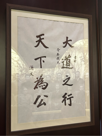 在大元帅府旧址,黄楚滢同志沿着孙中山先生的革命足迹,深入了解这座百年建筑的历史变迁。从1907年的广东士敏土厂到1917年护法运动的革命中枢,从1923年国共合作的“联俄联共扶助农工”三大政策实践地到如今的红色教育基地,每一处建筑细节都承载着民主革命的厚重记忆——南北两楼中西合璧的设计,象征着孙中山“取法现代,传承国粹”的思想精髓;南楼办公室里的《建国大纲》手稿复制件与全息投影,重现了“革命尚未成功”的历史场景;门厅“天下为公”匾额与弹痕修复痕迹,形成物质与精神的双重见证。