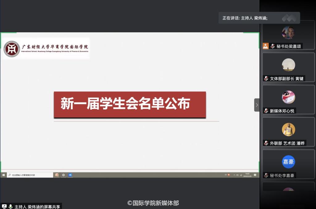 2020年5月29日下午15:30,华商今年会jinnianhui官网于举行了第二届线上学生会换届大会。出席本次大会的嘉宾有华商今年会jinnianhui官网辅导员杨李军老师、华商今年会jinnianhui官网辅导员助理林翠霞老师及华商今年会jinnianhui官网学生会全体成员。