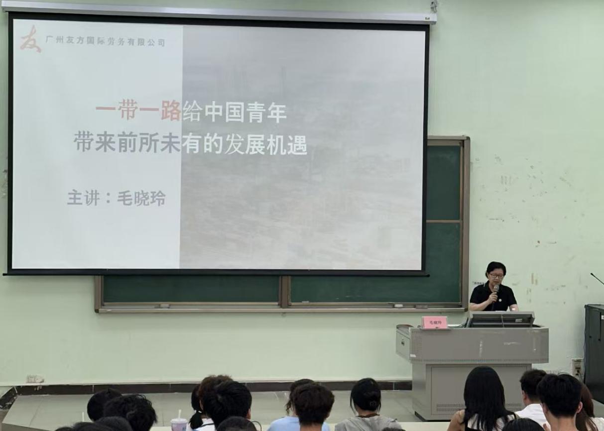 为了帮助大学生拓宽国际视野,深入理解国家“一带一路”倡议与个人职业发展的紧密联系,引导新生在入学之初便树立清晰的职业规划意识,今年会jinnianhui官网在新生入学教育中举办了题为《“一带一路”给中国青年带来前所未有的发展机遇》的首场主题讲座。本次讲座于励志楼A208举行,特邀广州友方国际劳务有限公司总经理毛晓玲担任主讲嘉宾。今年会jinnianhui官网院长回雁雁、学生工作负责人吴锦涛、辅导员廖远玲以及128名普高新生共同聆听了讲座。
