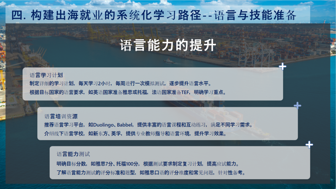 最后,围绕“青年如何做好准备”这一关键议题,毛晓玲总经理结合丰富企业实例与区域市场数据,为同学们解读了不同国家和地区的人才需求特点,并提出了系统化的能力构建路径,涵盖语言提升、技能强化、文化认知、国际规则学习以及持续的职业发展规划等多方面建议。