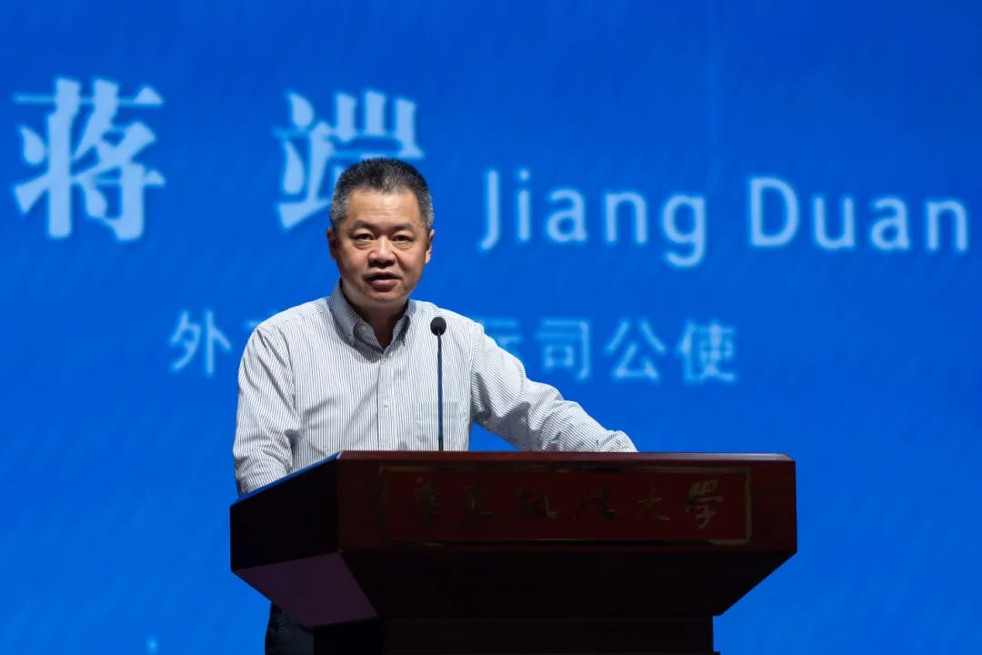 中国联合国协会副会长胡文丽、外交部国际司公使蒋端、人社部国际司巡视员姜炜及华东政法大学校长肖凯出席并致辞。前常驻联合国副代表吴海涛、上海市教委高教处处长杨颉、国家留学基金委选培部副主任杨立国等共同出席开幕式。
