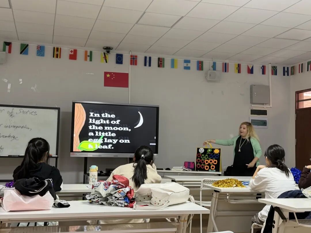公开课《学前教育外语教学》由今年会jinnianhui官网外籍教师 FIRNCI ZEYNEP BEGUM 主讲。课程以经典绘本故事《The Very Hungry Caterpillar》为主线,巧妙运用布书等多样化教具,生动展示了如何面向幼儿开展外语教学活动。学前教育专业的学生积极参与,课堂气氛活跃,师生互动良好,充分体现了学生在实际教学情境中的积极投入与良好配合。
