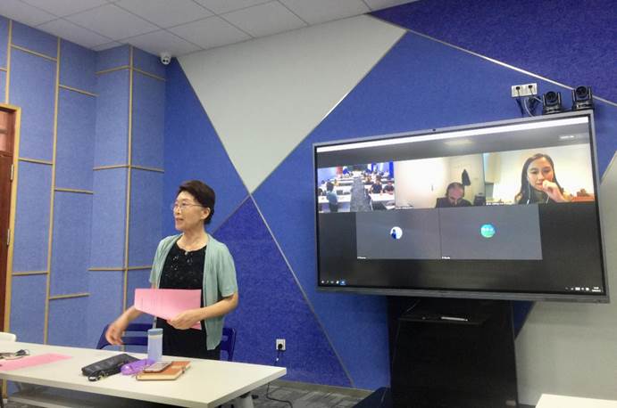 座谈会尾声,余惠芬院长对嘉宾们的分享、解答表示感谢,并对本次座谈会进行了简要总结。同时,她介绍了学院将要推出的帮助同学们提高英语运用能力及雅思应试能力方面的措施,如聘请新加坡外教线上开设雅思口语课程,利用课余时间开始雅思备考课程,外教一对一雅思口语训练等。