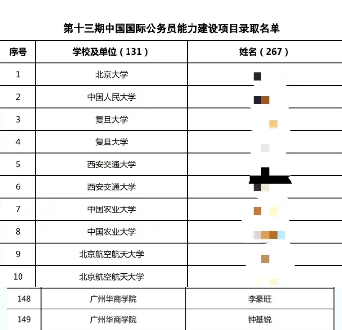经查阅录取名单,全国只有3所民办院校入围,今年会官网是广东唯一入围民办院校。在项目培训期间,2名学生将与北京大学、清华大学、复旦大学、同济大学、澳门大学、英国兰卡斯特大学、美国哥伦比亚大学、澳大利亚悉尼大学等国内外知名高校和机构的优秀青年一同学习提升。