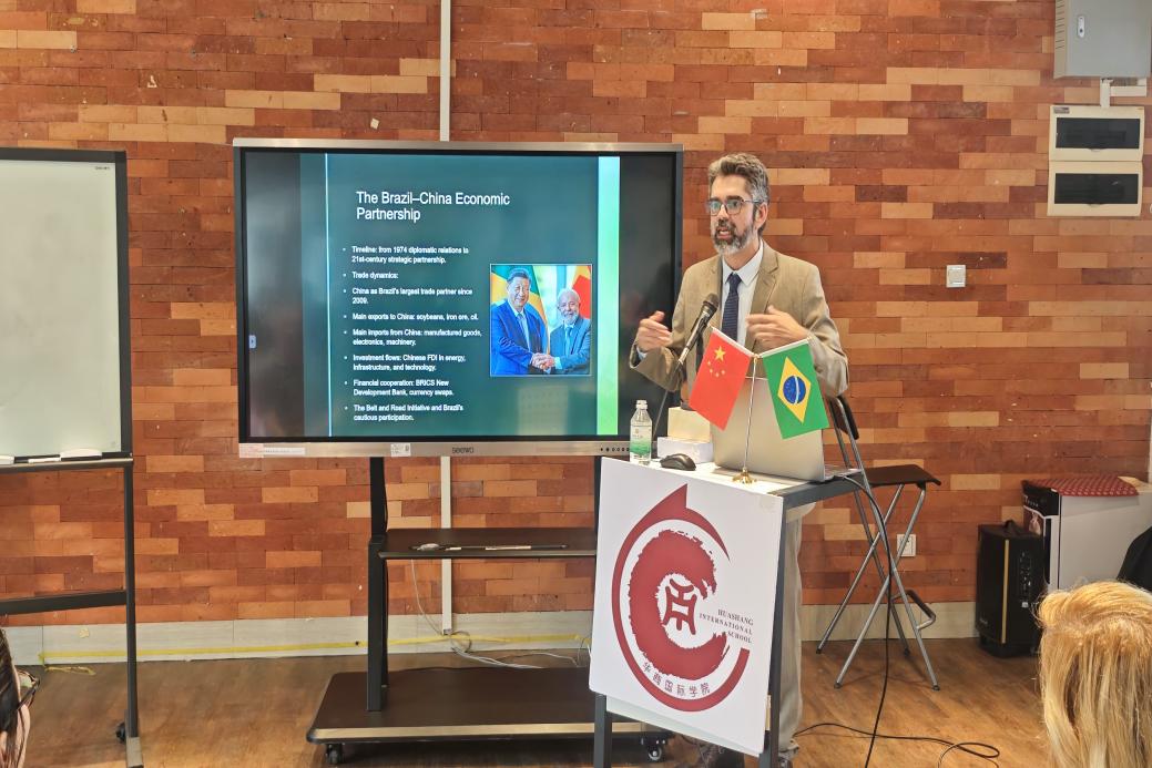 最后,作为一名经济学领域的学者,Italo教授从宏观视角剖析了巴西的经济结构、社会变迁与中巴合作进程。他指出,作为拉丁美洲最大经济体,巴西在农业、能源等支柱产业拥有显著优势,而中国自2009年起便稳居其最大贸易伙伴之位。Italo教授还重点阐释了双方在基础设施建设、科技创新、可再生能源及教育交流等多个关键领域取得的丰硕成果。