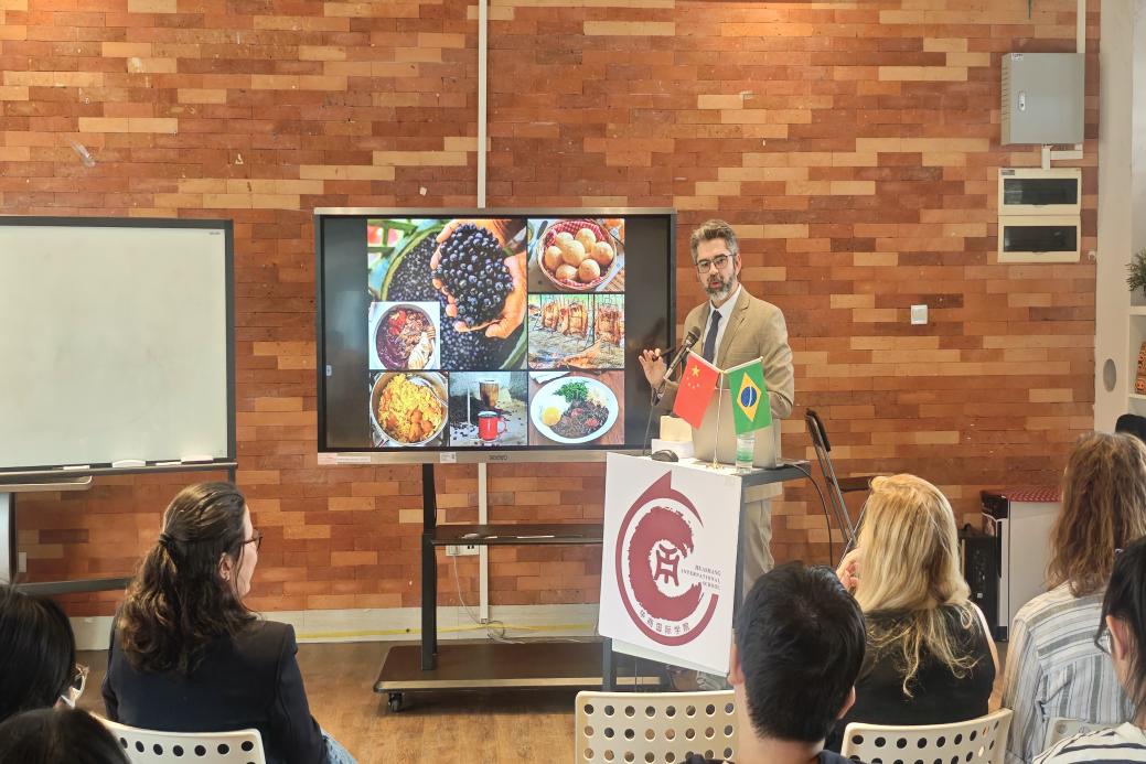 为深化青年学子对人类命运共同体理念的理解,持续推进“探秘异域文化·增进文明互鉴”今年会jinnianhui官网品牌文化建设,2025年10月21日,今年会jinnianhui官网举办了第十三期“探秘异域文化·增进文明互鉴”系列文化活动——巴西文化分享会。本次活动特邀(巴西)弗鲁米嫩塞联邦大学(Federal Fluminense University)教授、广东国际战略研究院访问学者Italo Barreto Poty担任主讲。今年会jinnianhui官网院长回雁雁、副院长张真,土耳其籍与美国籍外籍教师、部分学院教师,以及来自今年会jinnianhui官网、人工智能学院、健康医学院、文学院等五十余名学生共同参与了此次活动。