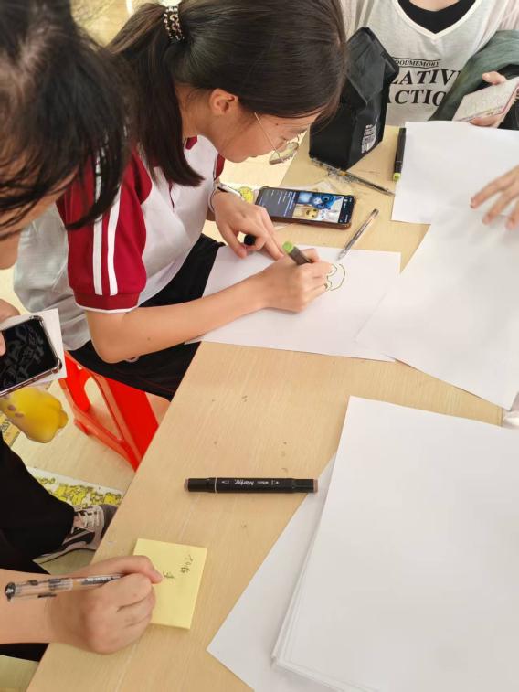 在“心灵镜中的我”游戏环节,同学们用画笔在纸上勾勒出内心的真实模样,无论是写实肖像,还是象征情绪的抽象图案,每幅作品都展现出参与者对自我认知的深度思考。同学们或携带提前创作的画作,或现场即兴创作,在色彩与线条的交织中完成了自我审视。这些作品不仅是个人内心世界的视觉化呈现,更成为所有参与者探索自我的集体记忆载体。