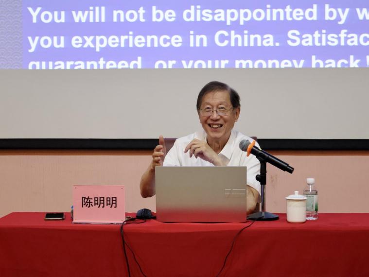 陈明明大使以幽默风趣的开场拉近了与听众的距离,并围绕主题,结合自身丰富的外交经验和担任国家领导人翻译工作的经历,深入浅出地分享了十个重要的沟通技巧:一是以受众为中心,传递有价值信息;二是善用文化共鸣与故事化表达;三是声音洪亮、语速适中、吐字清晰;四是自信从容,保持微笑与眼神交流;五是注入幽默与激情,善用肢体语言;六是语言简洁直接,避免冗长句式;七是内容具体,慎用中式典故;八是培养“表演意识”,提升感染力;九是放下发音焦虑,专注信息传递;十是持续练习,挖掘潜力,并以2002年在新西兰举办的中国旅游推介会演讲为例,详细演示了如何灵活运用以上原则。