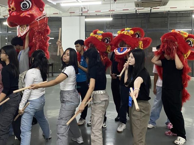 如果说课堂是知识的汲取与沉淀,那么亲手体验便是文化最生动的绽放。在剪纸课上,彩纸于指尖轻盈翻飞,蜕变为一幅幅吉祥图案;书法教室里,氤氲墨香间,学子们提笔运腕,初探笔墨力道与韵味;面包工坊中,从揉面、塑形到烘烤,亲手制作的粤式菠萝包香气四溢,让人在烟火气里品味匠心;练习场内,伴随着舞狮的铿锵鼓点,模仿英歌舞的刚健步伐,他们在沉浸式体验中感受到民俗艺术奔涌的喜庆与力量。每一次动手实践,都不只是技巧的模仿,更是一场与中华文化跨越山海的深度对话。