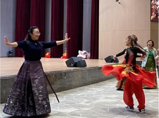 在营期的尾声,一场以文化为媒、以心灵相契的盛宴如约而至。结营仪式上,中印尼师生同台献艺,共同呈现了一场精彩纷呈的汇报演出。印尼营员们带来了热情洋溢的传统歌舞,中国师生则演绎了优美灵动的新疆民族舞蹈。当全场共同跳起节奏鲜明的印尼萨曼舞与欢快活泼的维吾尔族赛乃姆时,音乐、掌声与欢笑交织成一片,不同的文化在韵律中相融,语言的隔阂被节奏与笑容打破。