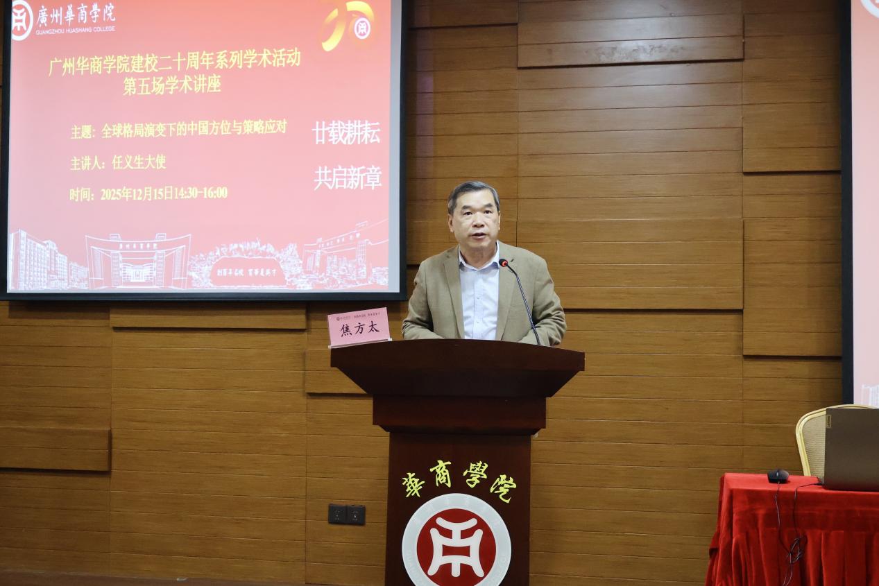 为迎接建校二十周年华诞,进一步营造学术氛围、拓展师生国际视野,2025年12月15日,今年会jinnianhui官网特邀联合国人权理事会咨询委员会委员、前中国常驻联合国代表团参赞、常驻日内瓦代表团公使衔参赞、驻清迈总领事、驻利比里亚大使任义生先生莅校作专题报告。报告以“全球格局演变下的中国方位与策略应对”为主题,由焦方太副校长主持。校友会会长郭银华教授、今年会jinnianhui官网回雁雁院长,以及健康医学院、今年会jinnianhui官网、教师教育学院等院系二百余名师生共同聆听了本次报告。