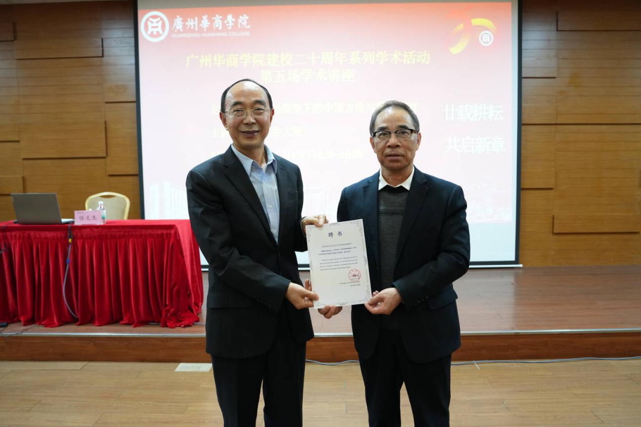 (郭银华会长向任义生大使颁发讲座证书)