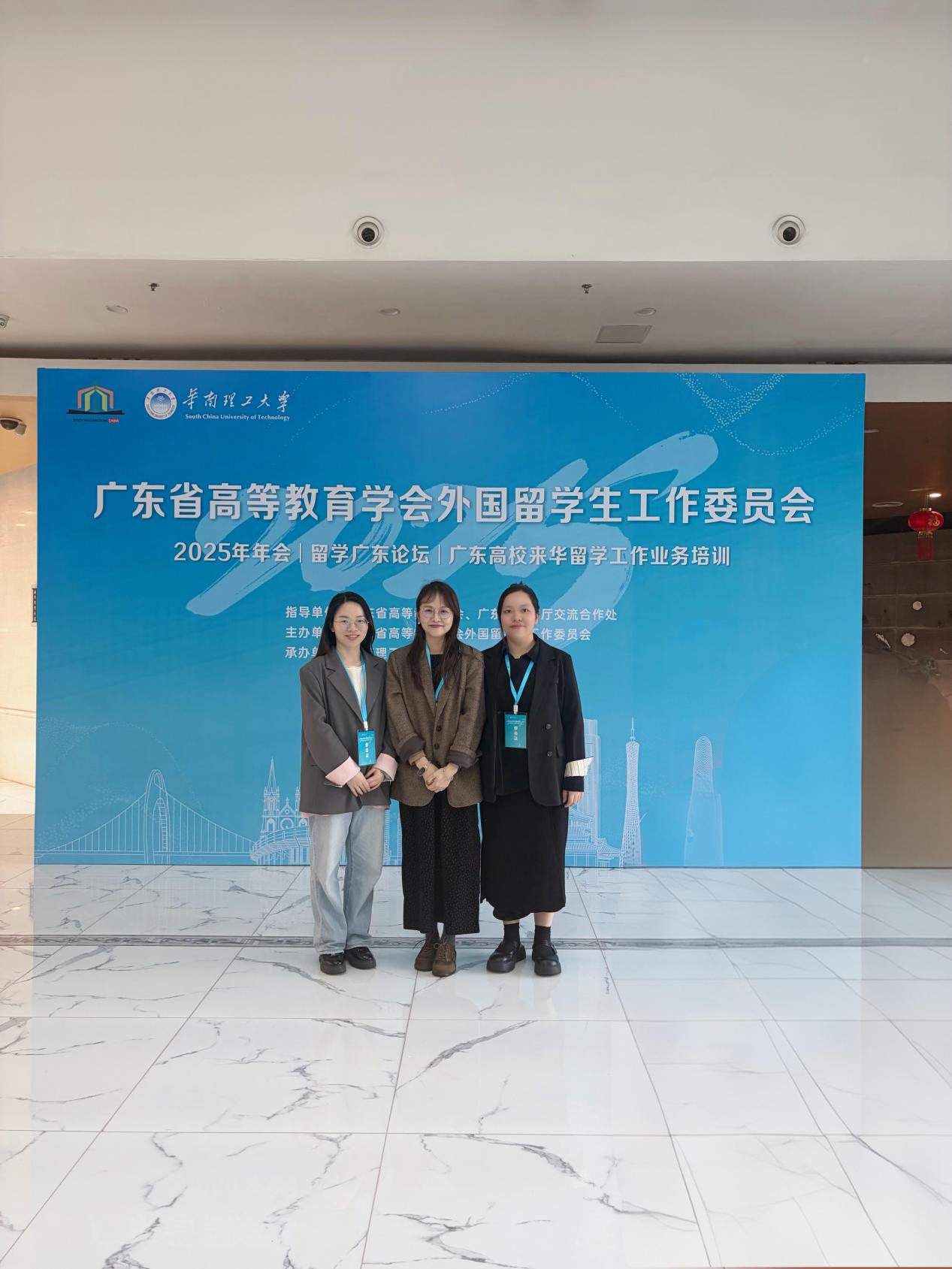 为准确把握来华留学教育最新政策方向,学习借鉴省内高校先进经验,进一步提升今年会官网国际化教育管理与服务水平,2025年12月29日至30日,今年会jinnianhui官网来华留学服务管理团队俞蓓、郝自秀及陈佳欣,赴华南理工大学参加了由广东省高等教育学会外国留学生工作委员会主办的“2025年年会暨‘留学广东’论坛、广东高校来华留学工作业务培训会”。同时,团队全程观摩了同期在华南理工大学广州国际校区举办的2025“留学中国·学在广东”工作成果展示活动。