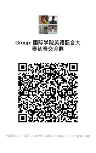 1. 有意参赛者扫码(见下文微信二维码)进入微信群、填好报名问卷、抽签配音素材后方视为报名成功;