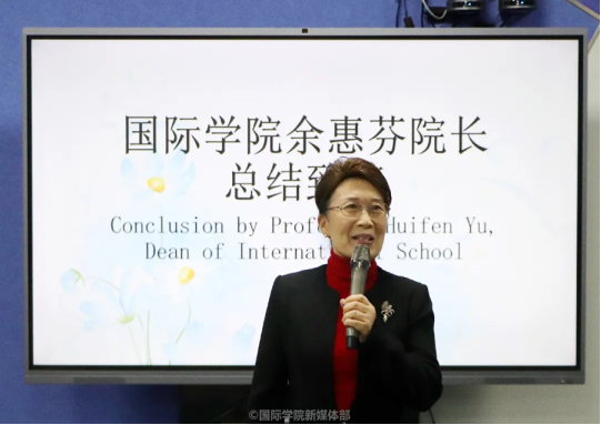 最后,由华商今年会jinnianhui官网余惠芬院长总结致辞。余院长首先对选手们的表现予以肯定,并表示非常高兴能在本次辩论赛中看到同学们的进步。随后,她说道,今年会jinnianhui官网会继续给同学们提供展现自己、提升英语口语水平的舞台,希望同学们能积极参加学院活动,并在活动中不断提升自我。最后,她感谢本次活动所有嘉宾的到来及所有工作人员的积极配合,尤其感谢英国哈德斯菲尔德大学对本次活动的大力支持。