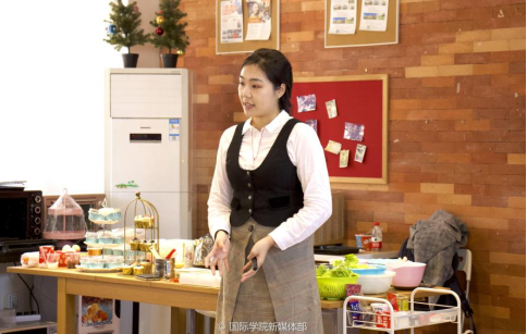 第二个环节是制作茶点。Yvonne老师带大家制作精美的糕点,有酥酥软软的司康饼、健康美味的三明治、甜品界女王红丝绒蛋糕等,同学们积极参与其中,耐心制作,最后一份份精美的糕点呈现在大家面前。