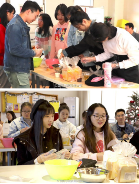 (同学们认真制作点心)