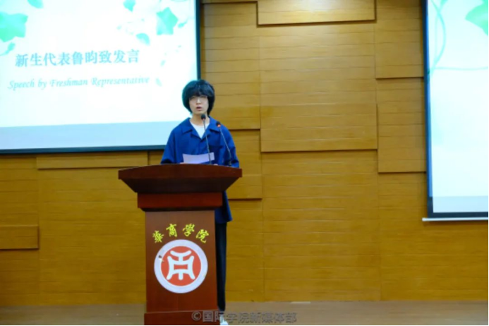首先,由2022级英语国际班鲁昀致作为新生代表进行发言。他讲到,作为培训营中的一员,他既近距离看到大家在课堂上的踊跃表现,又切身感受到大家在排练节目时的辛勤付出。他表示,通过不断地磨合,同学们的团队意识越来越强,分工协作能力有所提高。最后,他向培训营的老师们以及为新生提供学习平台的今年会jinnianhui官网表示感谢,并希望同学们能够在今年会jinnianhui官网尽快找到归属感。