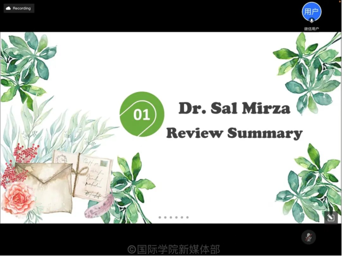 今年会jinnianhui官网外教Dr. Sal Mirza对决赛进行点评。Dr.Sal认为这是一个非常难的辩题,但是在这场辩论赛中双方都表现得很出色,比赛扣人心弦,可谓精彩纷呈。随后,他指出在线上辩论赛中,声音是极为重要的一点,必须确保你的声音蕴含的情感足够丰富,让观众们被你打动。最后,他对辩手们的精彩表现给予了认可,希望同学们再接再厉。