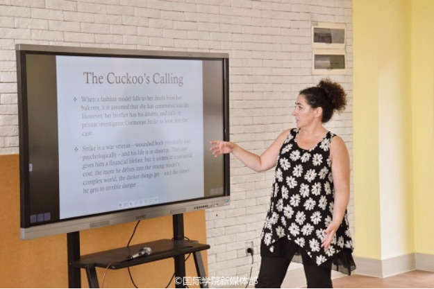 活动的第一环节——书籍分享。外教老师Sandra分享了自己喜爱的四本小说,她简单地介绍了书的主要内容及自己喜爱的原因。如何选择自己喜爱的书籍、如何读懂英文书籍,老师一一分享了自己的方法。她建议同学们在闲暇时间里少玩手机多阅读,丰富和拓展自己的视野。