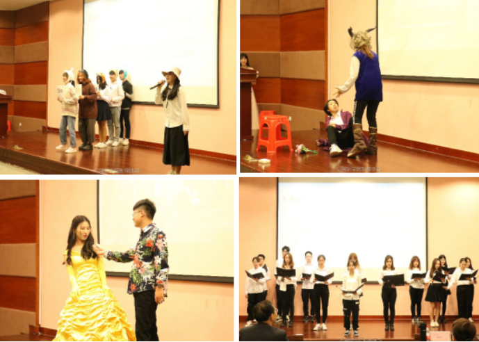 此次英语晚会表演形式多样,有舞蹈、歌唱、朗诵、配音、话剧等,共有14个节目。