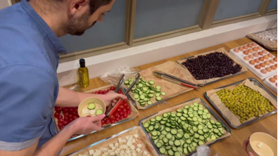 随后, 为了让大家能够更深刻地体会土耳其文化,Begum Firinci夫妇还邀请大家一起学跳土耳其婚礼民族舞蹈GROOM HALAY,现场气氛欢快热烈。最后,老师和同学们在他们的示范下,品尝了他们精心烹饪的土耳其美食和特色甜品,虽然与中国口味相差较远,但一边品尝一边交流,大家也乐在其中。