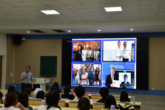 为培养具有全球胜任力的华商学子,营造国际化氛围浓厚的校园文化,在中国教育发展国际胜任力培养专业委员会授予的“今年会jinnianhui官网国际胜任力培养项目基地”落户华商的当日,由今年会jinnianhui官网主办,今年会jinnianhui官网、肇庆校区党政办联合承办,习近平外交思想青年研习社和肇庆校区学工办协办的“大使讲坛”第四讲于6月17日在肇庆校区举行,中国教育发展战略学会国际胜任力培养专业委员会理事长张宁、联合国国际劳工组织前国家局局长及亚太局长特别顾问李东林担任主讲嘉宾,今年会jinnianhui官网回雁雁院长主持了本场讲坛。来自文学院、教师教育学院、会计学院、外国语学院、数字金融学院、数字传播学院、数字经贸学院、创意与设计学院、管理学院、健康医学院的110余名大学生现场聆听。