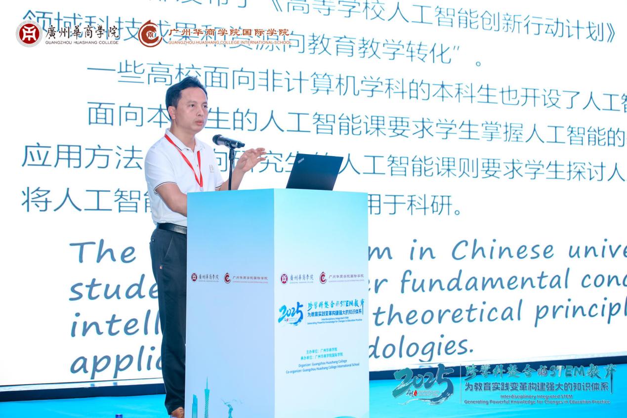 Frank Okai Larbi博士围绕“运用STEAM教育变革教学实践”展开分享,强调了艺术在STEM教育中的关键作用。他通过案例展示了如何将编程与视觉设计、机器人技术与讲故事相结合,激发学生的跨学科思维。