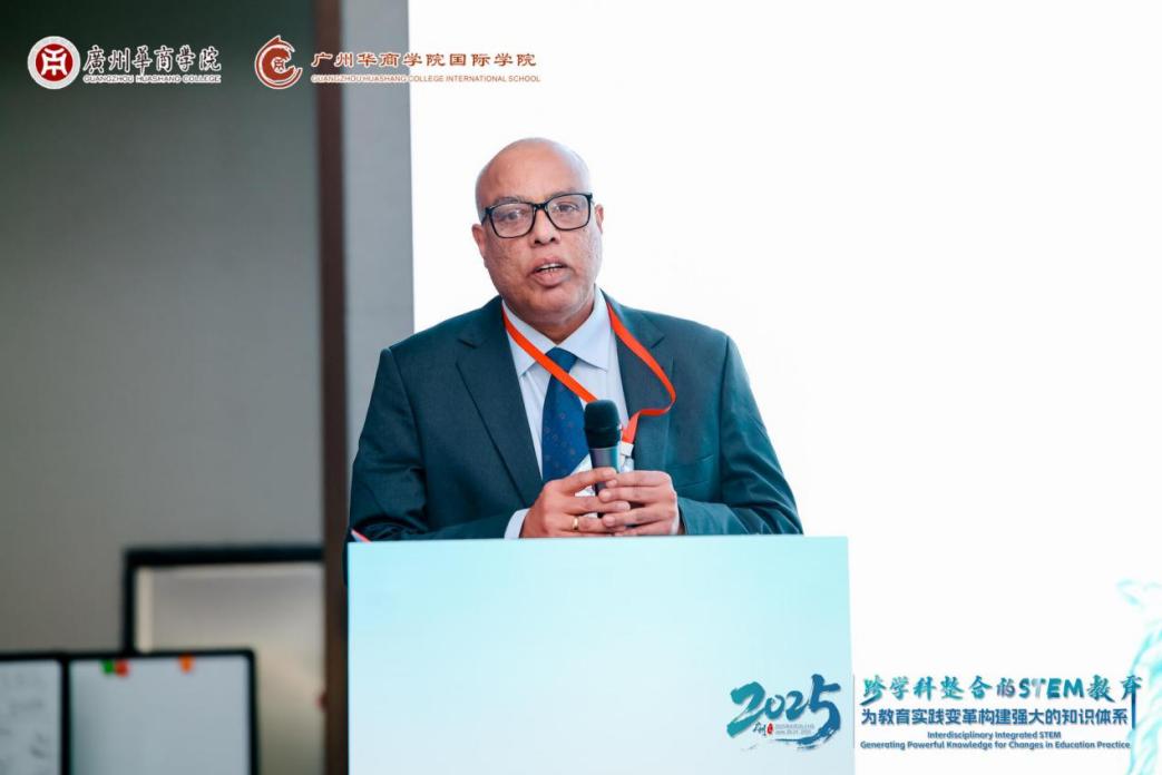 论坛上,澳大利亚拉筹伯大学Premnadh Madhava Kurup博士以"跨学科融合的STEM教育——构建强大知识体系"为题作主旨报告。他指出,STEM教育不仅是科学、技术、工程和数学的简单结合,更是推动社会变革的系统性思维。他从工业革命视角出发,分析了气候变化、资源短缺和人工智能发展等全球性挑战,强调STEM教育必须打破学科界限,培养学生系统思维、复杂沟通和问题解决能力。通过科学和医学领域的创新案例,他展示了"知识共创"和团队协作在跨学科实践中的重要性。最后他提出,未来STEM教育应融入伦理、文化和全球视野,以构建适应复杂世界需求的知识体系。