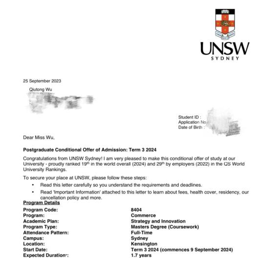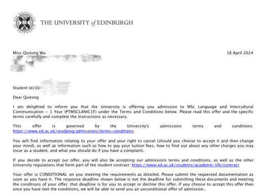 吴同学通过自身的努力,再加上华商-EIA双学位项目的学习经历,让她斩获了6所世界排名Top50大学的研究生offer!