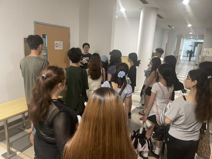 图二:新加坡管理大学在校学生带领同学参观校园