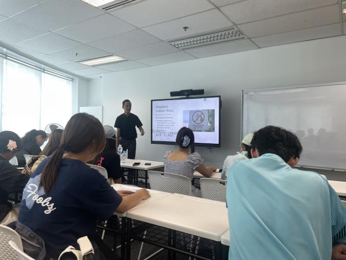 邀请了新加坡中汇学院(EIS)资深教师Mr. Hafiz,以全英文形式为同学们带来一场生动的新加坡文化沉浸式讲座。Mr. Hafiz介绍了新加坡独具特色的教育制度,并解析了新加坡文化。通过丰富的历史背景、生活实例和互动问答,同学们不仅领略了新加坡多元文化和谐共生的独特魅力,更对"新加坡模式"的文化融合与教育理念形成了认知。