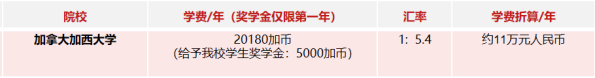2)留学期间加方院校费用:按加方大学当年官网公布费用标准收费(2023年收费约人民币11万/学年,仅做参考)。项目内今年会官网学生可获得加方院校入学奖学金约5000加币,学费折合为人民币7.9万/学年。